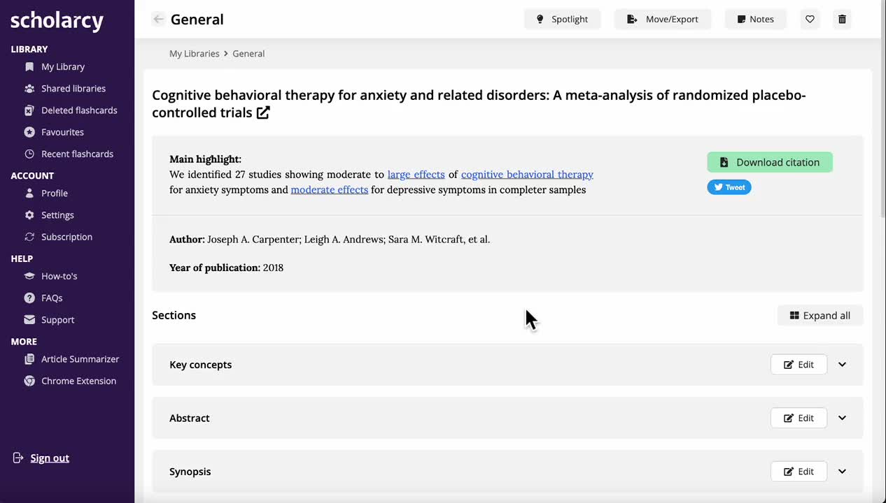 With Scholarcy, you can export flashcards and easily create fully formatted bibliographies. You can export multiple flashcards at once, or specific sections of flashcards. Scholarcy makes it easy to export your flashcards and data into other research applications, too.